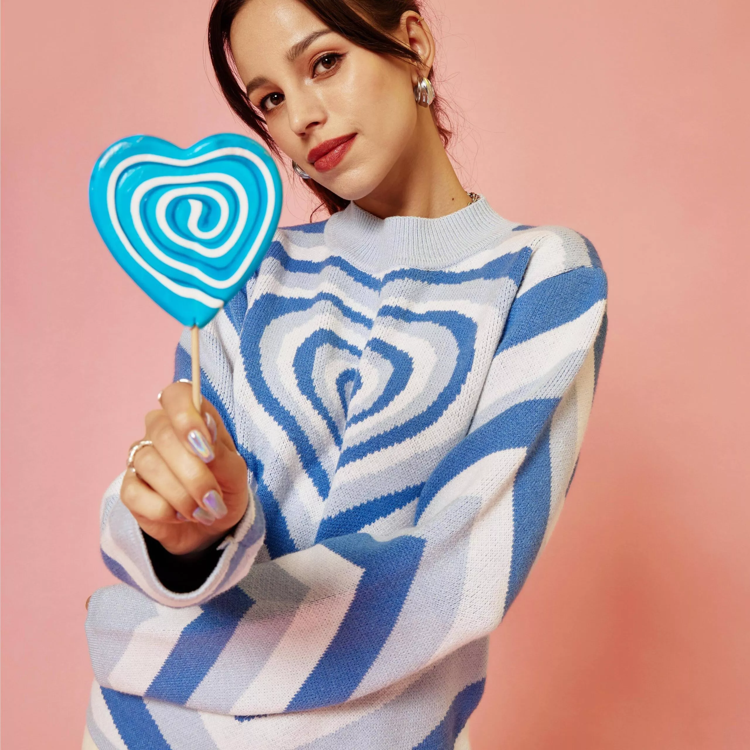 Discover Cozy Chic with Our Colorful Heart Print Knit Turtleneck Sweater