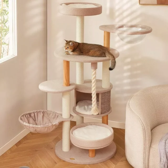 This cat tree is ideal for multi-cat households looking to provide their pets with a safe, entertaining, and comfortable environment. It’s perfect for cats of all ages and sizes, offering various activities and resting areas. Use it in your living room, bedroom, or any space your cat loves spending time in. Its stylish design seamlessly blends with any home decor, making it a great addition to your space.