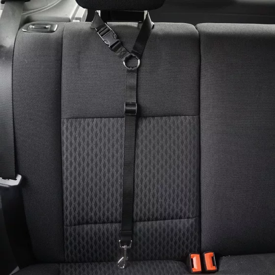 I love this. I just adopted a 3 year old mix breed. He wants to be on my lap at all times. This isn’t safe when I drive so we now have a system. He gets in the backseat. I put his harness on and hook it to his “seat belt”. This goes securely around the headrest and keeps him in the backseat. It also keeps him safe from sudden stops. Last week while driving an old 2 lane highway a truck in oncoming traffic decided he was going to pass. The problem was that I was in my lane and he was heading straight for me. I had no where to go. I slammed on my brakes which allowed him the extra second to get back on his side of the road. Since Murphy had his harness and belt on he was safe and secure in his seat. Remember, DO NOT CONNECT THIS TO YOUR DOG’S COLLAR. ALWAYS USE SOME SORT OF HARNESS!!!
