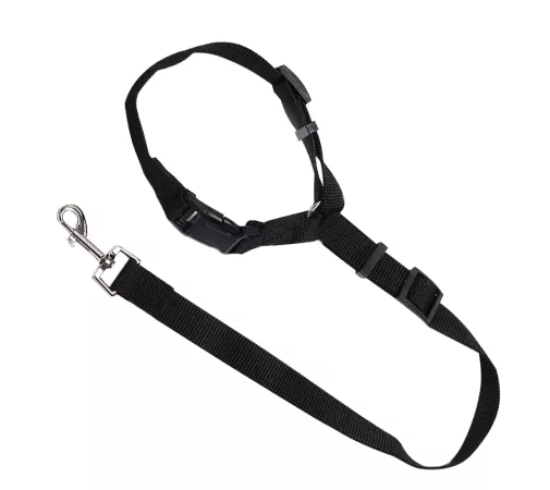 It is better for our dog and vehicle than seat belts that fasten into a seat belt slot. Those release if the button is pushed - like when a dog steps on it. This attachment to the headrest does not have that problem. Easy to attached/remove from the headrest if necessary but holds a dog in the backseat properly. No jumping out a window or open door; no injury from being thrown into the front seat if there's a sudden stop; etc. Clips onto a loop on the chest side of a vest-type collar. I wouldn't want to attach any restraint on a "choke" collar.