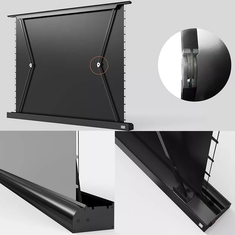 - Easy Installation: Say goodbye to the hassle of drilling. Our floor rising screen effortlessly extends upward, offering a simple setup that’s perfect for any room.