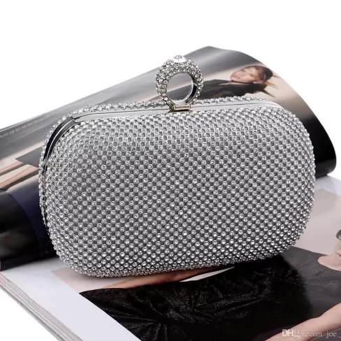 Our Rhinestone Evening Clutch is crafted from polyester and metal and is available in gold, black, or silver for a versatile piece in your collection that can go with any dress, outfit, or occasion. Each clutch comes with a matching chain that measures up to 47in (120cm); the chain is removable for full customizability (ladies, the choice is yours).