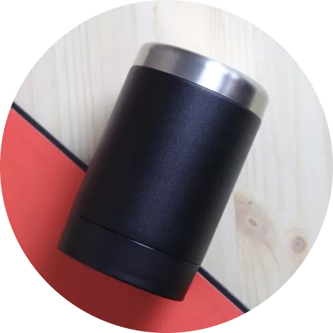 I really wanted a nice coozie for pounders... this one is "almost" perfect. Construction is sound, it keeps beverages cold, threaded cap looks like it will last. The only problem is that there is excess play laterally inside the coozie. I traced the opening and cut a piece of cardboard to fit. Problem solved with a little leg work.